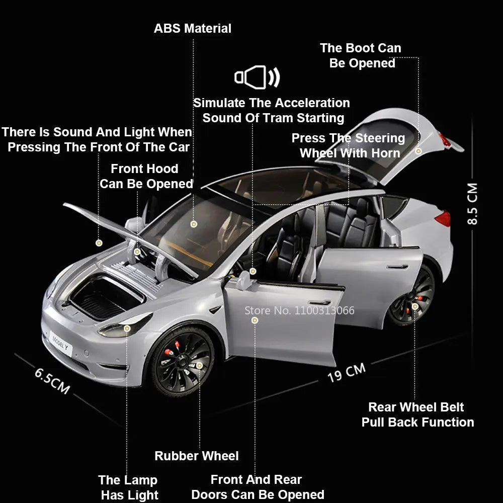 Experience the sleek elegance of the 1:24 Tesla Model Y Diecast — a detailed alloy model featuring opening doors, LED lighting, and realistic sound effects. Built for collectors and car lovers alike.